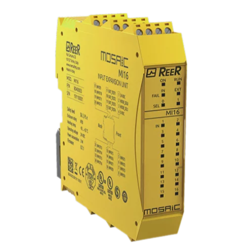 Safety Integrated Controller REER được thiết kế để bảo vệ nhà máy hoặc máy móc, hãy sử dụng Bộ điều khiển an toàn Mosaic SIL3/PLe dạng mô-đun có thể tùy chỉnh cấu hình. Các cảm biến và lệnh an toàn được Mosaic giám sát, chẳng hạn như máy quét laser, rèm đèn an toàn, công tắc cơ, tế bào quang điện, điều khiển hai tay và dừng khẩn cấp có khả năng quản lý tập trung trong một thiết bị linh hoạt, duy nhất.