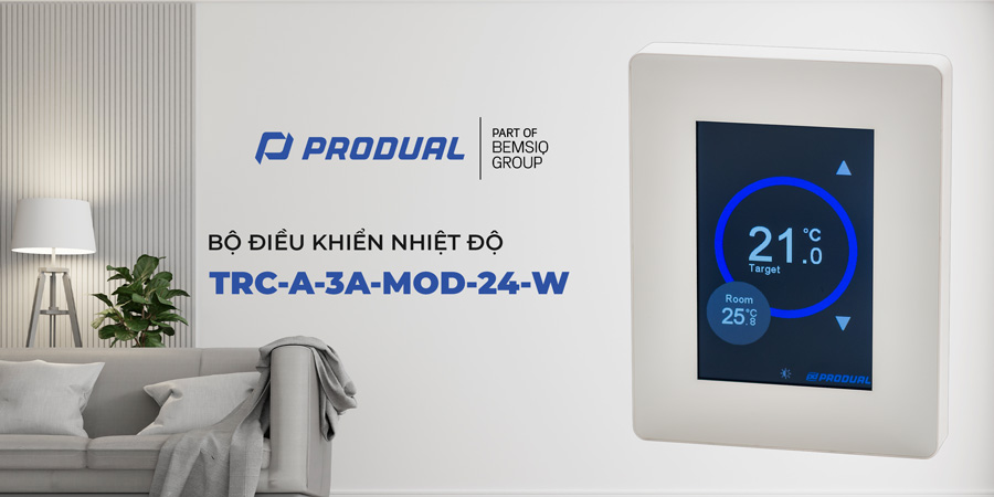 Bộ điều khiển nhiệt độ phòng PRODUAL TRC-A-3A-MOD-24-W là thiết bị tích hợp cảm biến đo nhiệt độ và bộ xử lý tín hiệu nhằm giám sát điều kiện nhiệt độ trong không gian kín. Thiết bị không chỉ đo lường mà còn truyền dữ liệu về hệ thống điều khiển trung tâm thông qua Modbus RTU. Dựa trên dữ liệu thực tế, hệ thống HVAC có thể điều chỉnh làm lạnh hoặc sưởi khi nhiệt độ vượt ngưỡng cài đặt. Việc điều khiển theo dữ liệu thực tế giúp đảm bảo sự thoải mái, ổn định và bảo vệ thiết bị trong không gian sử dụng.