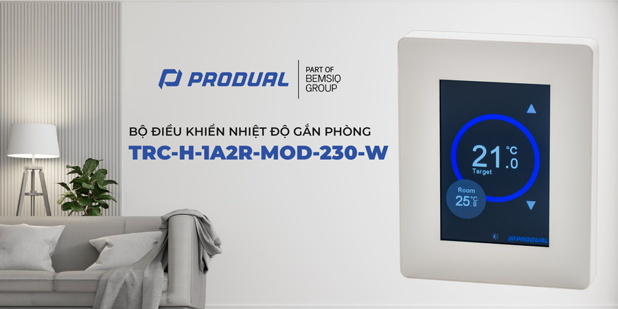 Bộ điều khiển nhiệt độ phòng PRODUAL TRC-H-1A2R-MOD-230-W là thiết bị tích hợp cảm biến đo nhiệt độ và bộ xử lý tín hiệu nhằm giám sát điều kiện nhiệt trong không gian kín như văn phòng, khách sạn, trung tâm thương mại hoặc phòng họp. Thiết bị không chỉ đo nhiệt độ môi trường mà còn truyền dữ liệu về hệ thống điều khiển trung tâm thông qua giao thức Modbus RTU. Dựa trên thông số thực tế, hệ thống HVAC có thể điều chỉnh làm lạnh hoặc sưởi ấm phù hợp, thay vì vận hành theo chế độ cố định, từ đó tiết kiệm năng lượng và nâng cao độ chính xác điều khiển.