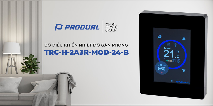 Bộ điều khiển nhiệt độ phòng PRODUAL TRC-H-2A3R-MOD-24-B là thiết bị tích hợp cảm biến đo nhiệt độ và bộ xử lý tín hiệu nhằm giám sát điều kiện nhiệt trong không gian kín. Thiết bị không chỉ đo nhiệt độ môi trường mà còn truyền dữ liệu về hệ thống điều khiển trung tâm thông qua giao thức Modbus RTU. Dựa trên thông số thực tế, hệ thống HVAC có thể điều chỉnh làm lạnh hoặc sưởi ấm phù hợp thay vì vận hành cố định, từ đó tiết kiệm năng lượng và nâng cao độ chính xác điều khiển.