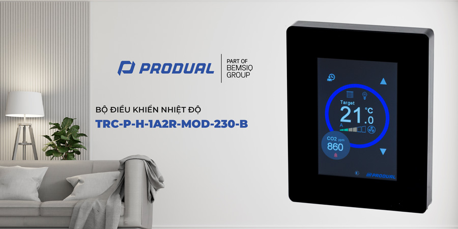 Bộ điều khiển nhiệt độ phòng PRODUAL TRC-P-H-1A2R-MOD-230-B là thiết bị tích hợp cảm biến đo nhiệt độ và bộ xử lý tín hiệu nhằm giám sát điều kiện nhiệt độ trong không gian kín. Thiết bị không chỉ đo lường mà còn truyền dữ liệu về hệ thống điều khiển trung tâm thông qua Modbus RTU. Dựa trên dữ liệu nhiệt độ thực tế, hệ thống HVAC có thể điều chỉnh làm lạnh hoặc sưởi khi nhiệt độ vượt ngưỡng cài đặt. Việc điều khiển theo dữ liệu thực tế giúp đảm bảo sự thoải mái, ổn định và bảo vệ thiết bị trong không gian sử dụng.