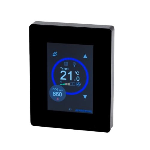Bộ điều khiển nhiệt độ gắn phòng TRI-1R-MOD-24-B của Hãng PRODUAL - Phần Lan là dòng cảm biến nhiệt độ phòng cao cấp, chất lượng cao chuyên dùng đo nhiệt độ trong văn phòng, tòa nhà.