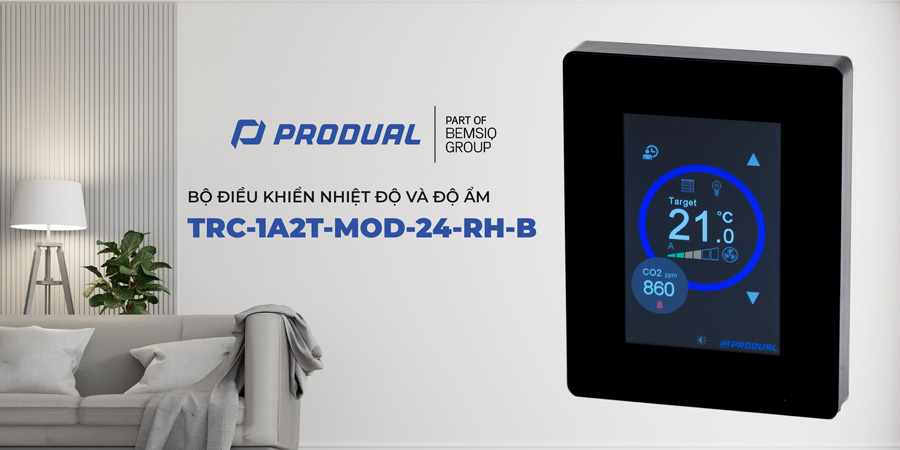 Bộ điều khiển nhiệt độ và độ ẩm phòng PRODUAL TRC-1A2T-MOD-24-RH-B là thiết bị tích hợp cảm biến đo nhiệt độ, cảm biến độ ẩm tương đối (RH) và bộ xử lý tín hiệu nhằm giám sát điều kiện môi trường trong không gian kín. Thiết bị không chỉ đo lường mà còn truyền dữ liệu về hệ thống điều khiển trung tâm thông qua Modbus RTU. Dựa trên thông số thực tế, hệ thống HVAC có thể điều chỉnh làm lạnh, sưởi, tạo ẩm hoặc hút ẩm khi nhiệt độ hoặc độ ẩm vượt ngưỡng cài đặt. Việc điều khiển theo dữ liệu thực tế giúp đảm bảo sự thoải mái, hạn chế nấm mốc và bảo vệ thiết bị trong không gian sử dụng.