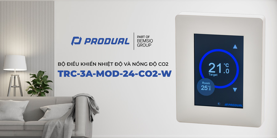Bộ điều khiển nhiệt độ và nồng độ CO2 phòng PRODUAL TRC-3A-MOD-24-CO2-W là thiết bị tích hợp cảm biến đo nhiệt độ, cảm biến CO2 và bộ xử lý tín hiệu nhằm giám sát điều kiện môi trường trong không gian kín. Thiết bị không chỉ đo lường mà còn truyền dữ liệu điều khiển về hệ thống trung tâm thông qua Modbus RTU. Dựa trên dữ liệu thực tế, hệ thống HVAC có thể điều chỉnh làm lạnh, sưởi hoặc tăng lưu lượng gió tươi khi nồng độ CO2 vượt ngưỡng cài đặt. Việc điều khiển theo dữ liệu thực tế giúp đảm bảo sự thoải mái, nâng cao chất lượng không khí và bảo vệ thiết bị trong không gian sử dụng.