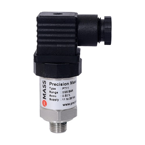 Cảm biến áp suất PT11 của hãng MASS được làm từ thép không rỉ SS316L cao cấp cho các ứng dụng đo áp suất chất lỏng hơi, khí công nghiệp sử dụng nguyên lý Piezo resistive cho độ ổn định cao, bền bỉ, chống ăn mòn hóa chất dùng cho dầu, chất lỏng thủy lực.