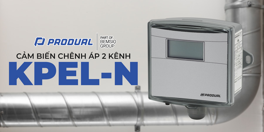 CẢM BIẾN CHÊNH ÁP 2 KÊNH PRODUAL KPEL-N là cảm biến chênh áp đa năng thuộc dòng KPEL của Produal, thiết kế chuyên dụng để đo đồng thời hai kênh chênh áp hoặc áp suất riêng biệt trong hệ thống HVAC/R. Mỗi kênh đo độc lập, bù nhiệt độ tự động, dải đo tùy chọn riêng (bằng jumper hoặc ML-SER tool). Chức năng tự zeroing định kỳ loại bỏ drift zero point, không cần hiệu chỉnh lại thường xuyên. Ngõ ra kép (2x 0-10 VDC hoặc 2x 4-20 mA) cho phép truyền dữ liệu hai kênh đến BMS/PLC, hỗ trợ giám sát từ xa và tích hợp hệ thống điều khiển thông minh. Phiên bản KPEL-N tích hợp màn hình LCD backlight hiển thị giá trị đo thời gian thực của cả hai kênh (độ phân giải 1 Pa), giúp kỹ thuật viên kiểm tra nhanh tại chỗ. Thiết bị còn hoạt động như bộ điều khiển (controller mode), cài đặt thông qua công cụ ML-SER. Với dải đo rộng tùy chỉnh (±100 Pa đến 0…2500 Pa), KPEL-N đáp ứng hầu hết ứng dụng đo chênh áp gió trong tòa nhà, từ lọc gió, cầu thang áp lực dương, đến giám sát lưu lượng gió và điều khiển quạt.