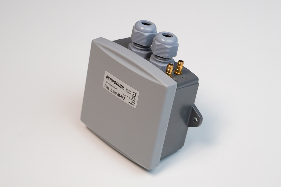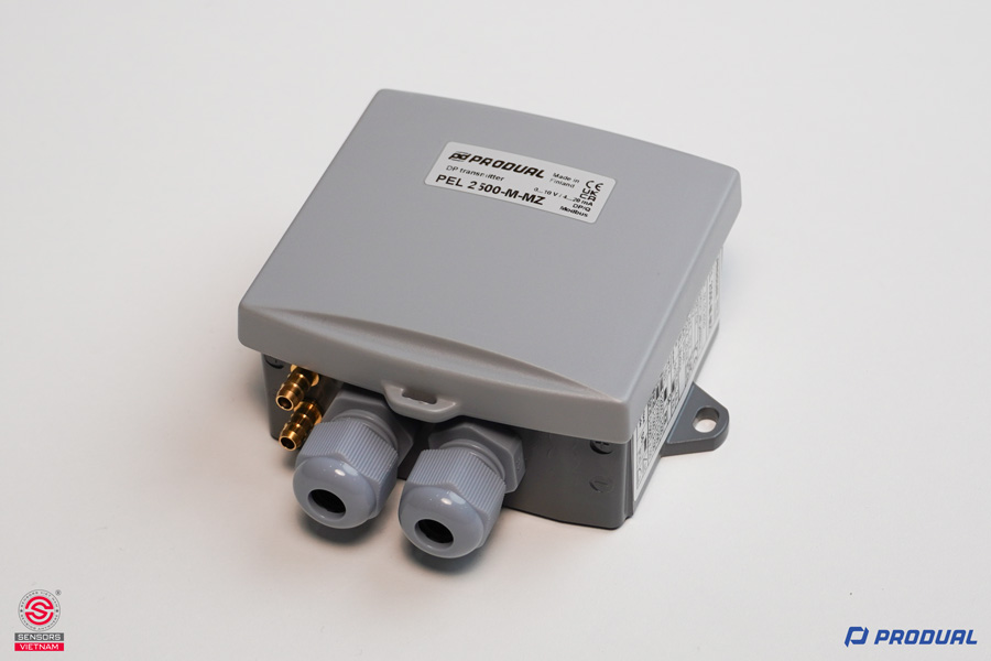 CẢM BIẾN CHÊNH ÁP KHÍ PEL 2500-MZ là dòng cảm biến đo chênh lệch áp suất của hãng PRODUAL / PHẦN LAN, nổi tiếng về các thiết bị tự động hóa tòa nhà. Đây là dòng sản phẩm chuyên dụng và phổ biến trong các Hệ thống Thông gió và Điều hòa không khí (HVAC) của tòa nhà, trung tâm thương mại và các ứng dụng đòi hỏi độ chính xác cao như phòng sạch. Cảm biến chênh áp gió được sử dụng để đo sự khác biệt áp suất khí tại hai điểm (thường là áp suất dương và áp suất âm), giúp kiểm soát luồng không khí, giám sát tình trạng lọc bẩn, và đảm bảo áp suất dương/âm trong phòng sạch hoặc cầu thang thoát hiểm.
