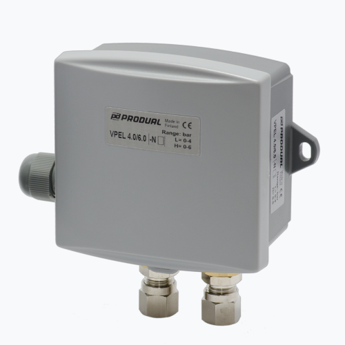 Cảm biến chênh áp suất nước 0-2.5 Bar VPEL 1.0/2.5 là dòng cảm biến đo chênh lệch áp suất dải đo 0-1 bar hoặc 0-2.5 bar tùy chỉnh của hãng Produal – Phần Lan chuyên dùng để đo chênh áp nước, đo chênh áp chất lỏng, đo chênh áp khí, đo chênh áp hơi để hiển thị và giám sát áp suất và mức chất lỏng, chất khí trong công nghiệp.