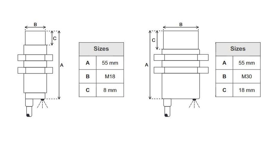 - Kích thước: Chiều dài thân 55 mm, đường kính ren chuẩn M18, dễ dàng tích hợp vào hệ thống.