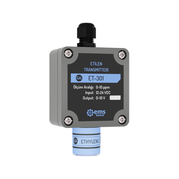 Cảm biến khí ETHYLENE ET-301 của Hãng EMS - TURKEY hay còn gọi là cảm biến khí ETHYLENE tên viết tắt là C2H4 là dòng cảm biến đo nồng độ khí ETHYLENE trong không khí để cảnh báo, báo động hoặc giám sát nồng độ khí ETHYLENE trong không khí, nhà xưởng, tầng hầm và các khu vực chống cháy nổ.