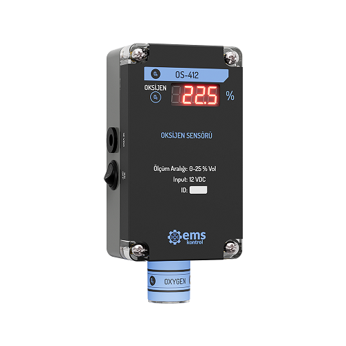 Cảm biến khí OXYGEN OS-412 của Hãng EMS - Turkey hay còn gọi là cảm biến khí OXYGEN, đầu dò khí OXYGEN, cảm biến báo rò rỉ khí OXYGEN là dòng cảm biến đo nồng độ khí OXYGEN trong không khí để cảnh báo, báo động hoặc giám sát nồng độ khí OXYGEN trong không khí, nhà xưởng, tầng hầm và các khu vực chống cháy nổ.