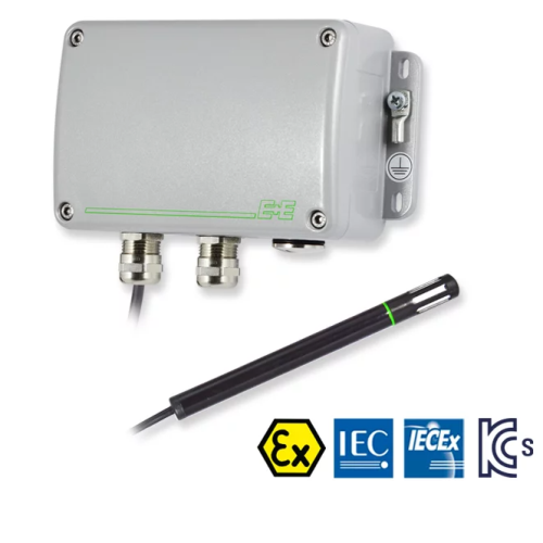 Cảm biến nhiệt độ và độ ẩm chống cháy nổ là thiết bị cảm biến đo độ ẩm không khí trong các khu vực yêu cầu cao. Độ ẩm là lượng hơi nước tồn tại trong không khí, độ ẩm tuyệt đối là khối lượng nước được tính bằng gam trên 1 mét khối không khí nào đó. Nhiệt độ cao thì độ ẩm càng cao và ngược lại nhiệt độ giảm độ ẩm sẽ giảm, thông thường độ ẩm sẽ được tính bằng phần trăm.
