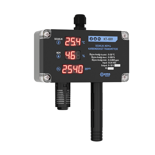 Cảm biến khí CO2, nhiệt độ và độ ẩm gắn tường dòng KT‑6X1 của hãng EMS – Turkey là thiết bị tích hợp ba chức năng đo lường chất lượng không khí trong cùng một cảm biến, phục vụ cho các ứng dụng giám sát và điều khiển trong hệ thống HVAC, tòa nhà thông minh, văn phòng, bệnh viện, khách sạn và trường học. Thiết bị giúp theo dõi nồng độ CO2, độ ẩm và nhiệt độ phòng một cách chính xác, ổn định và đáng tin cậy.