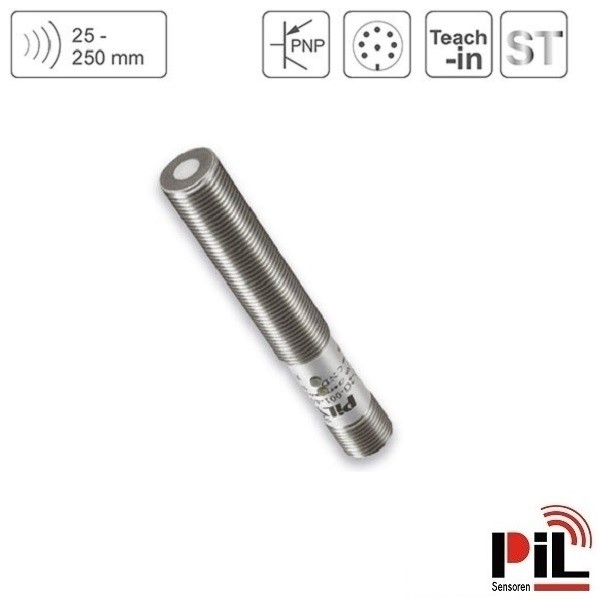 Cảm biến siêu âm đo mức P43-25-M12-ST-P-CM12 (250mm, 1 x PNP, NO/NC) của Hãng PIL - Germany là cảm biến đo khoảng cách sử dụng nguyên lý sóng siêu âm phát ra và thu về để tính toán chính xác khoảng cách từ cảm biến tới bề mặt vật thể cần đo chuyên dùng để đo mức nước, đo mức dầu, đo mức chất lỏng với độ chính xác cao dùng để kết nối, điều khiển và hiển thị mức lưu chất, khoảng cách cần đo trong các ứng dụng công nghiệp và nhà máy.