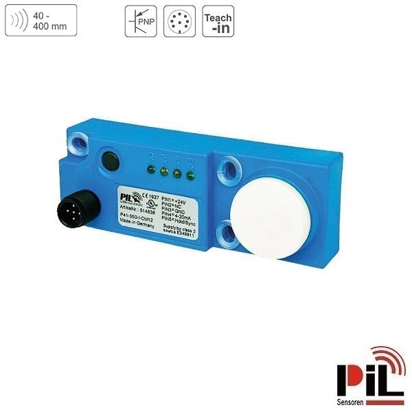 Cảm biến siêu âm đo mức P41-40-2P-CM12 (Dải đo 400mm, 2 x PNP, NO/NC) của Hãng PIL - Germany là cảm biến đo khoảng cách sử dụng nguyên lý sóng siêu âm phát ra và thu về để tính toán chính xác khoảng cách từ cảm biến tới bề mặt vật thể cần đo chuyên dùng để đo mức nước, đo mức dầu, đo mức chất lỏng với độ chính xác cao dùng để kết nối, điều khiển và hiển thị mức lưu chất, khoảng cách cần đo trong các ứng dụng công nghiệp và nhà máy.