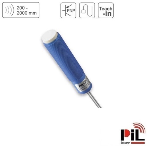 Cảm biến siêu âm đo mức P43-200-M18-PBT-2P-2m (2000mm, 2 x PNP, NO/NC) của Hãng PIL - Germany là cảm biến đo khoảng cách sử dụng nguyên lý sóng siêu âm phát ra và thu về để tính toán chính xác khoảng cách từ cảm biến tới bề mặt vật thể cần đo chuyên dùng để đo mức nước, đo mức dầu, đo mức chất lỏng với độ chính xác cao dùng để kết nối, điều khiển và hiển thị mức lưu chất, khoảng cách cần đo trong các ứng dụng công nghiệp và nhà máy.
