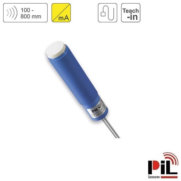 Cảm biến siêu âm đo mức P43-80-M18-PBT-I-2m (800mm, 4-20mA) của Hãng PIL - Germany là cảm biến đo khoảng cách sử dụng nguyên lý sóng siêu âm phát ra và thu về để tính toán chính xác khoảng cách từ cảm biến tới bề mặt vật thể cần đo chuyên dùng để đo mức nước, đo mức dầu, đo mức chất lỏng với độ chính xác cao dùng để kết nối, điều khiển và hiển thị mức lưu chất, khoảng cách cần đo trong các ứng dụng công nghiệp và nhà máy.