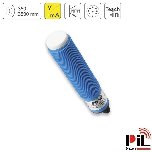 Cảm biến siêu âm đo mức P44-350-M30-UI2N-CM12 (3500mm, 2 x NPN, NO/NC, 0-10V, 4-20mA) của Hãng PIL - Germany là cảm biến đo khoảng cách sử dụng nguyên lý sóng siêu âm phát ra và thu về để tính toán chính xác khoảng cách từ cảm biến tới bề mặt vật thể cần đo chuyên dùng để đo mức nước, đo mức dầu, đo mức chất lỏng với độ chính xác cao dùng để kết nối, điều khiển và hiển thị mức lưu chất, khoảng cách cần đo trong các ứng dụng công nghiệp và nhà máy.