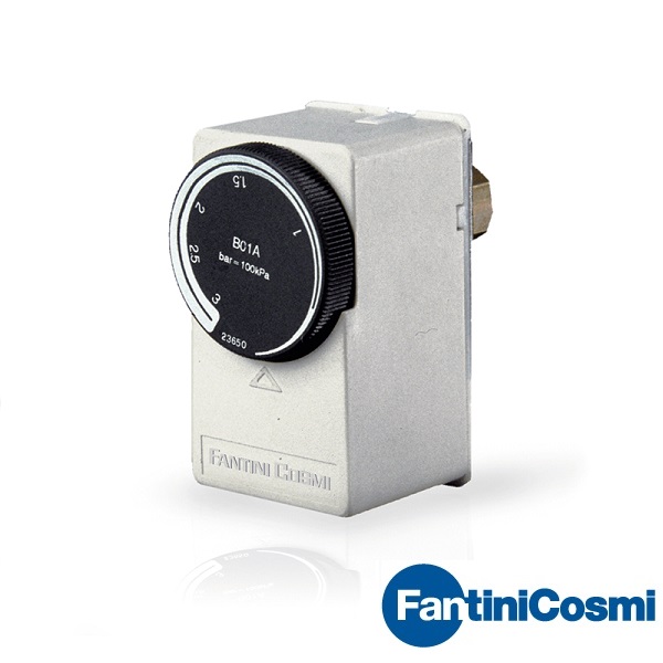 Công tắc áp suất nước B01C của Hãng FANTINI COSMI - ITALY hay còn gọi là công tắc báo quá áp suất gắn ống nước là sự kết hợp của bộ tiếp điểm đóng ngắt dạng relay với một cảm biến áp suất. Công tắc áp suất cho phép giám sát áp suất đường ống nước đến ngưỡng cài đặt, sau đó sẽ tác động relay đóng hoặc ngắt một thiết bị ngoại vi trên hệ thống như van xả, bơm, hệ thống tự động. Công tắc áp suất hoạt động hoàn toàn tự động theo ngưỡng cài đặt trước.