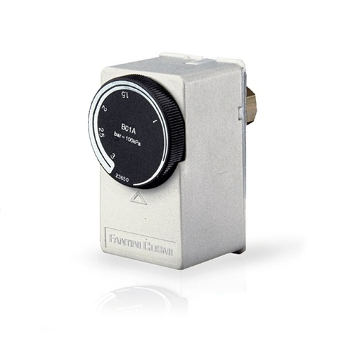Công tắc áp suất nước B01D của Hãng FANTINI COSMI - ITALY hay còn gọi là công tắc báo quá áp suất gắn ống nước là sự kết hợp của bộ tiếp điểm đóng ngắt dạng relay với một cảm biến áp suất. Công tắc áp suất cho phép giám sát áp suất đường ống nước đến ngưỡng cài đặt, sau đó sẽ tác động relay đóng hoặc ngắt một thiết bị ngoại vi trên hệ thống như van xả, bơm, hệ thống tự động. Công tắc áp suất hoạt động hoàn toàn tự động theo ngưỡng cài đặt trước.