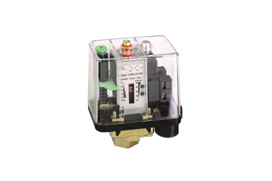 - Loại cảm biến: Công tắc áp suất điện cơ, màng (diaphragm), 12 bar.