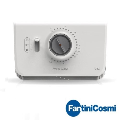 Công tắc nhiệt độ phòng C63 của Hãng FANTINI COSMI - ITALY hay còn gọi là công tắc báo quá nhiệt độ phòng, công tắc quá nhiệt gắn tường là sự kết hợp của bộ tiếp điểm đóng ngắt dạng relay với một đầu dò nhiệt độ. Công tắc nhiệt độ gắn phòng cho phép giám sát nhiệt độ đến ngưỡng cài đặt, sau đó sẽ tác động relay đóng hoặc ngắt một thiết bị ngoại vi trên hệ thống như quạt hút, quạt thổi hoặc điều hòa không khí. Công tắc hoạt động hoàn toàn tự động theo ngưỡng cài đặt trước.