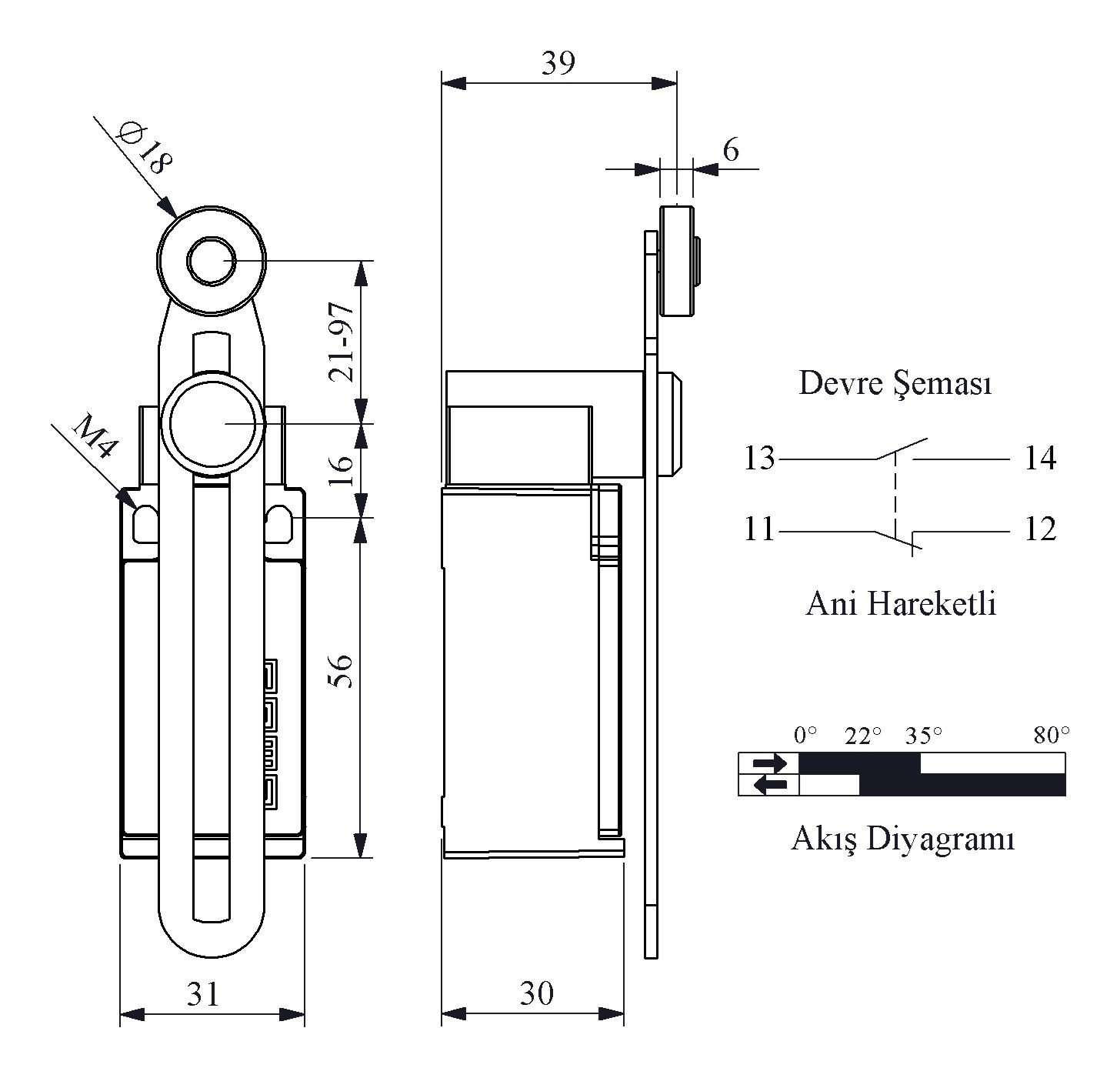 - Cơ cấu tác động: Con lăn kim loại, đường kính 18mm