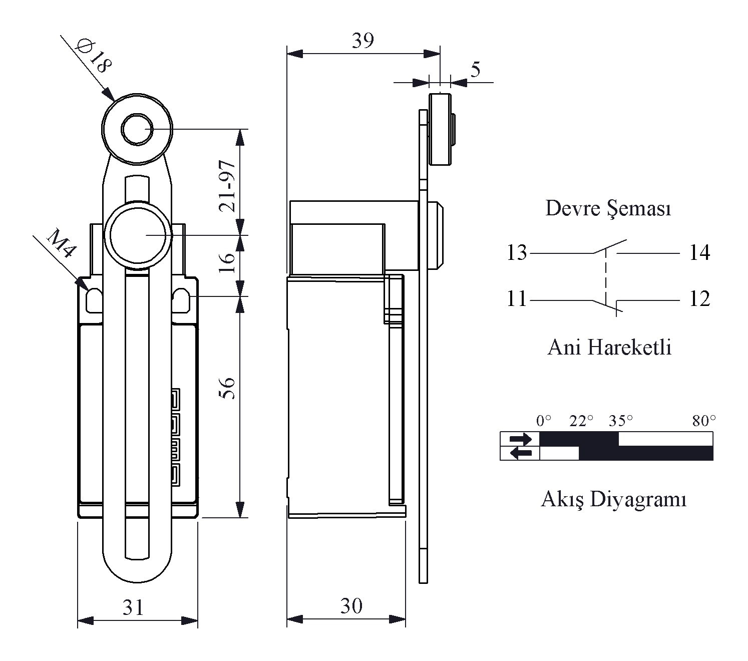 - Cơ cấu tác động: Con lăn nhựa, đường kính 18mm
