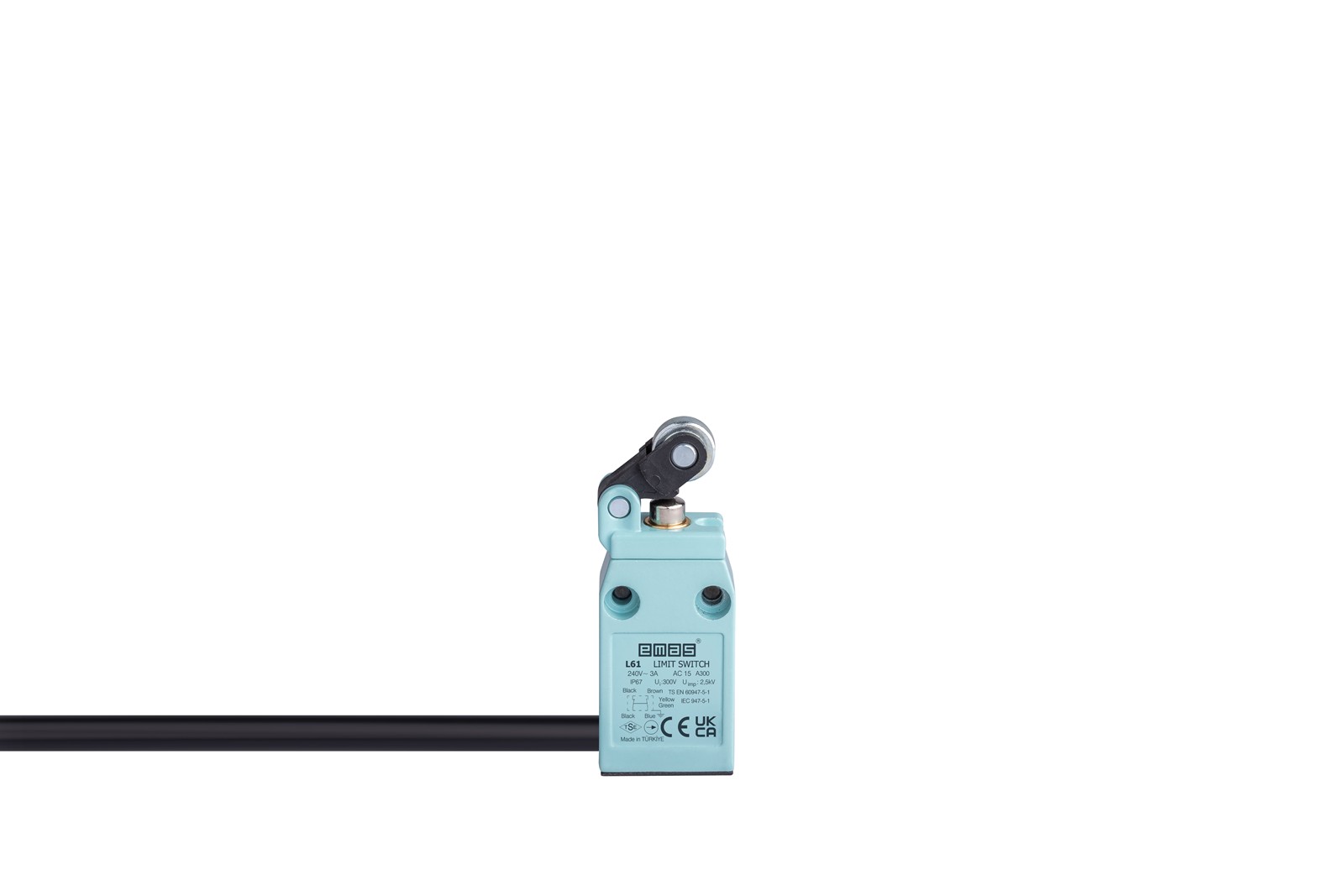 Công tắc hành trình EMAS L61K13MIM311 thuộc series L61 của hãng EMAS - Thổ Nhĩ kỳ. Điểm nổi bật nhất của sản phẩm này nằm ở lớp vỏ hợp kim nhôm vô cùng chắc chắn, kết hợp với cơ cấu truyền động là cần gạt con lăn kim loại đường kính 14mm. Thiết bị còn được trang bị tiếp điểm tác động nhanh (Snap Action) với cấu hình 1NO + 1NC (1 thường mở, 1 thường đóng) và đạt chuẩn bảo vệ lên đến IP67.