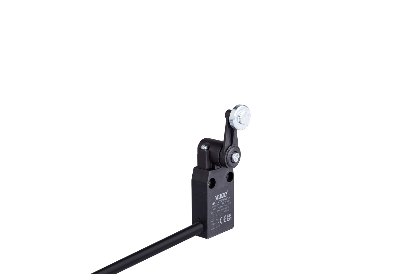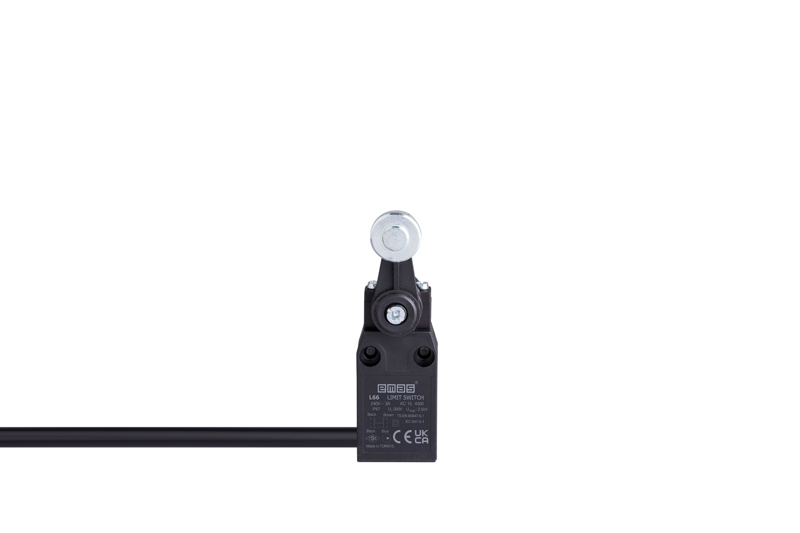 Công tắc hành trình EMAS L66K13MEM121-3.5 thuộc series L66 của hãng EMAS - Thổ Nhĩ kỳ. Điểm nổi bật nhất của sản phẩm này là cơ cấu truyền động cánh tay lăn kim loại (đường kính 18mm), kết hợp với tiếp điểm tác động nhanh (Snap Action - cấu hình 1NO + 1NC) và đạt chuẩn bảo vệ lên đến IP67.