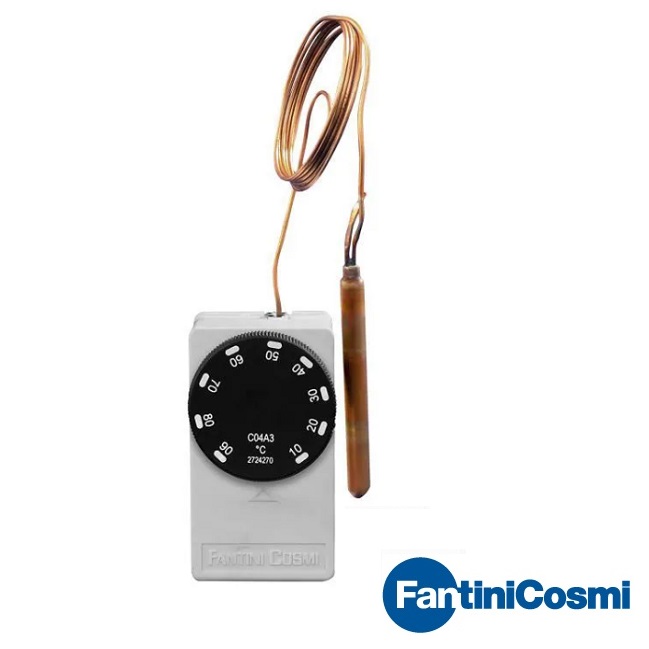 Công tắc nhiệt độ dạng dây C04A3 của Hãng FANTINI COSMI - ITALY hay còn gọi là công tắc báo quá nhiệt độ dạng dây, công tắc quá nhiệt dạng mao dẫn là sự kết hợp của bộ tiếp điểm đóng ngắt dạng relay với một đầu dò nhiệt độ. Công tắc nhiệt độ dạng dây cho phép giám sát nhiệt độ đến ngưỡng cài đặt, sau đó sẽ tác động relay đóng hoặc ngắt một thiết bị ngoại vi trên hệ thống như quạt hút, quạt thổi hoặc điều hòa không khí. Công tắc hoạt động hoàn toàn tự động theo ngưỡng cài đặt trước.
