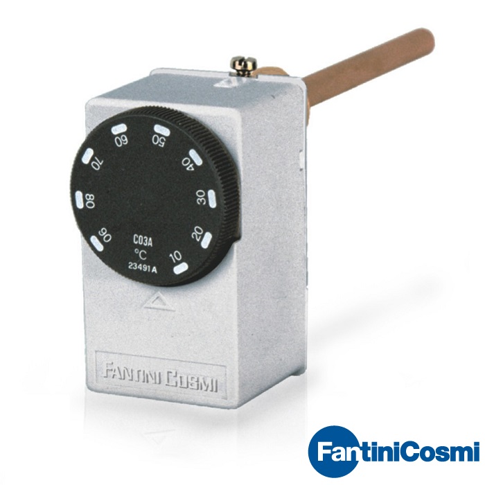 Công tắc nhiệt độ ống nước C03A3 của Hãng FANTINI COSMI - ITALY hay còn gọi là công tắc báo quá nhiệt ống nước là sự kết hợp của bộ tiếp điểm đóng ngắt dạng relay với một đầu dò nhiệt độ. Công tắc nhiệt độ nước cho phép giám sát nhiệt độ đến ngưỡng cài đặt, sau đó sẽ tác động relay đóng hoặc ngắt một thiết bị ngoại vi trên hệ thống như máy bơm, van cấp, van xả. Công tắc hoạt động hoàn toàn tự động theo ngưỡng cài đặt trước.