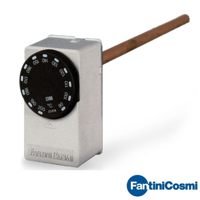 Công tắc nhiệt độ ống nước C08A của Hãng FANTINI COSMI - ITALY hay còn gọi là công tắc báo quá nhiệt ống nước là sự kết hợp của bộ tiếp điểm đóng ngắt dạng relay với một đầu dò nhiệt độ. Công tắc nhiệt độ nước cho phép giám sát nhiệt độ đến ngưỡng cài đặt, sau đó sẽ tác động relay đóng hoặc ngắt một thiết bị ngoại vi trên hệ thống như máy bơm, van cấp, van xả. Công tắc hoạt động hoàn toàn tự động theo ngưỡng cài đặt trước.
