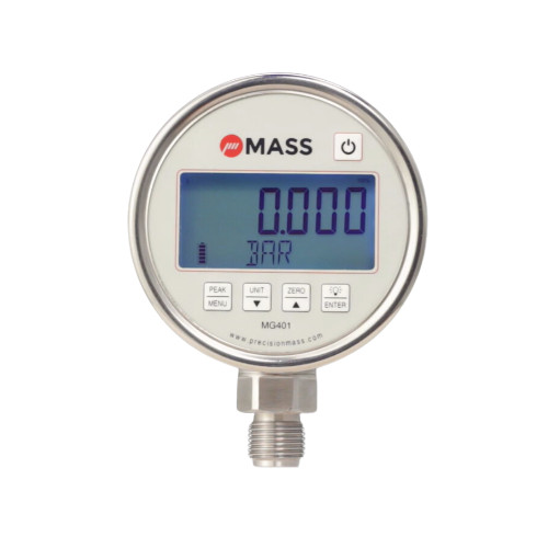 Đồng hồ áp suất dạng điện tử (Digital Pressure Gauge) dải đo 0 Bar đến 60 Bar 100-MG301-S-15-L-0/60 BAR-= của Hãng MASS - INDIA hay còn gọi là đồng hồ đo áp suất 1 bar, đồng hồ đo áp suất chất lỏng, đo áp suất chất khí dùng đo áp suất nước sạch, đo áp suất nước thải, đo áp suất dung dịch hóa chất, đo áp suất chất lỏng, đo áp suất nước nóng, đo áp suất nước lạnh trong công nghiệp.